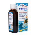 - شربت امگا3 یوروویتال حاوی اسیدهای چرب ضروری DHA و EPA، ویتامین A، ویتامین D و ویتامین E
