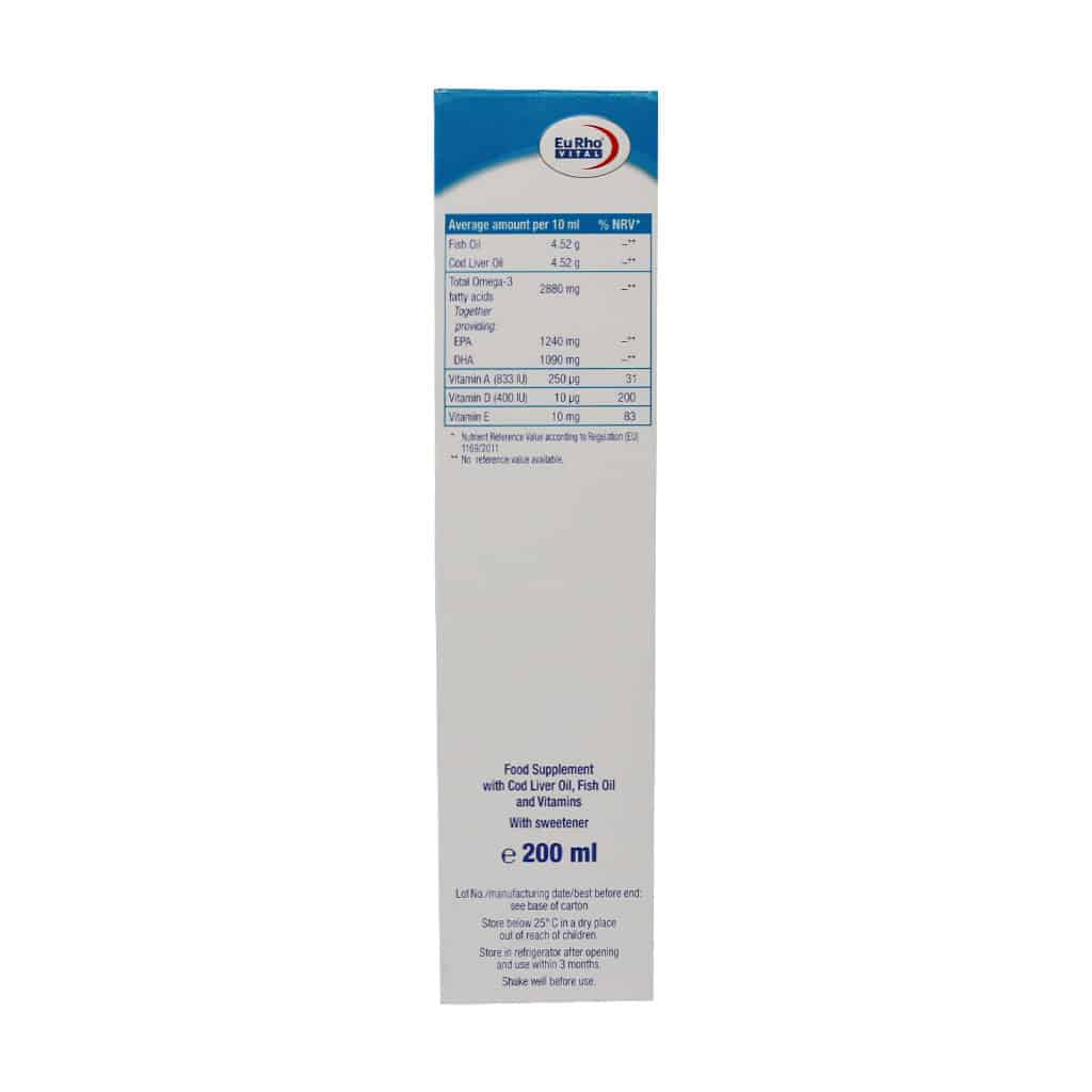 - حاوی روغن ماهی، روغن کبد ماهی و ویتامین های D ،A و E