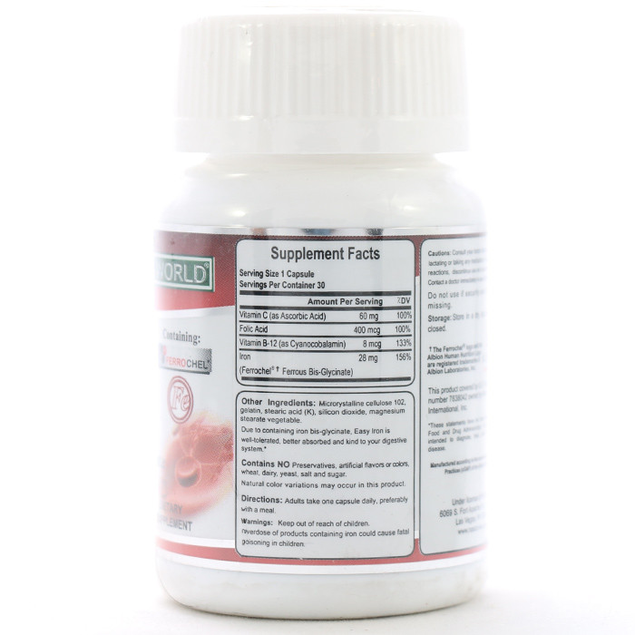 - ایزی آیرون نچرال ورلد حاوی آهن به فرم فروس بیس گلیسینات