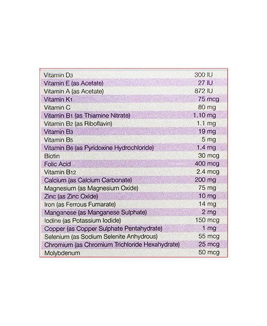 - فرموله شده بر اساس نیاز روزانه بانوان به ویتامینها و مواد معدنی