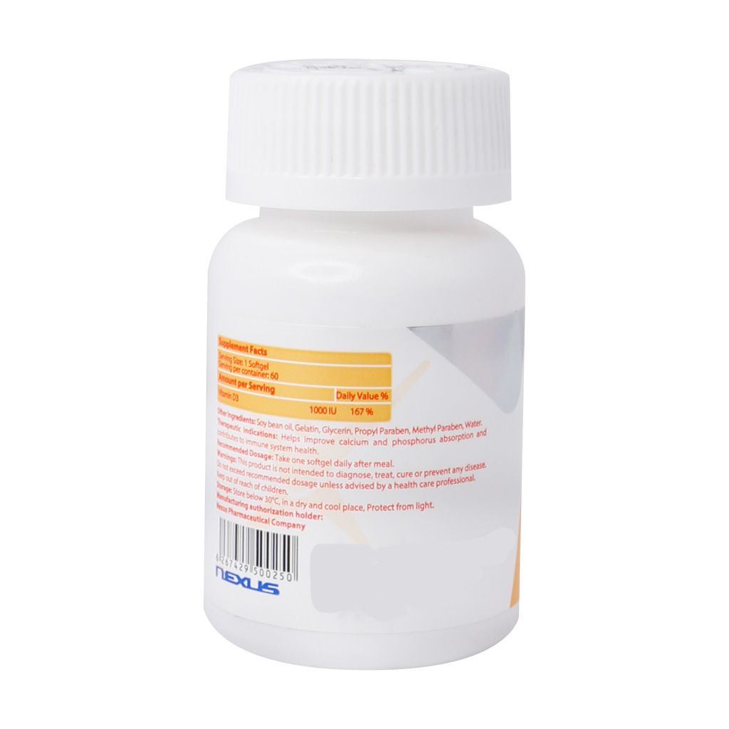 - هر سافت ژل حاوی 1000 واحد (IU) ویتامین د3