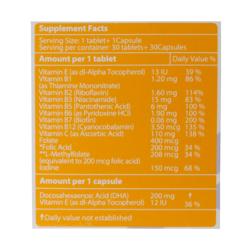 • حاوی ویتامین‌های محلول در آب از جمله فولیک اسید و ماده معدنی ید در قرص