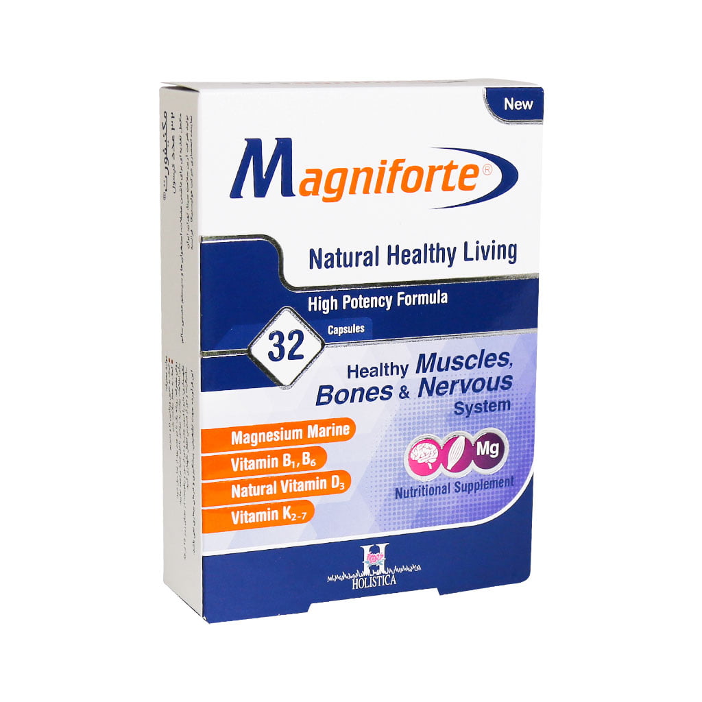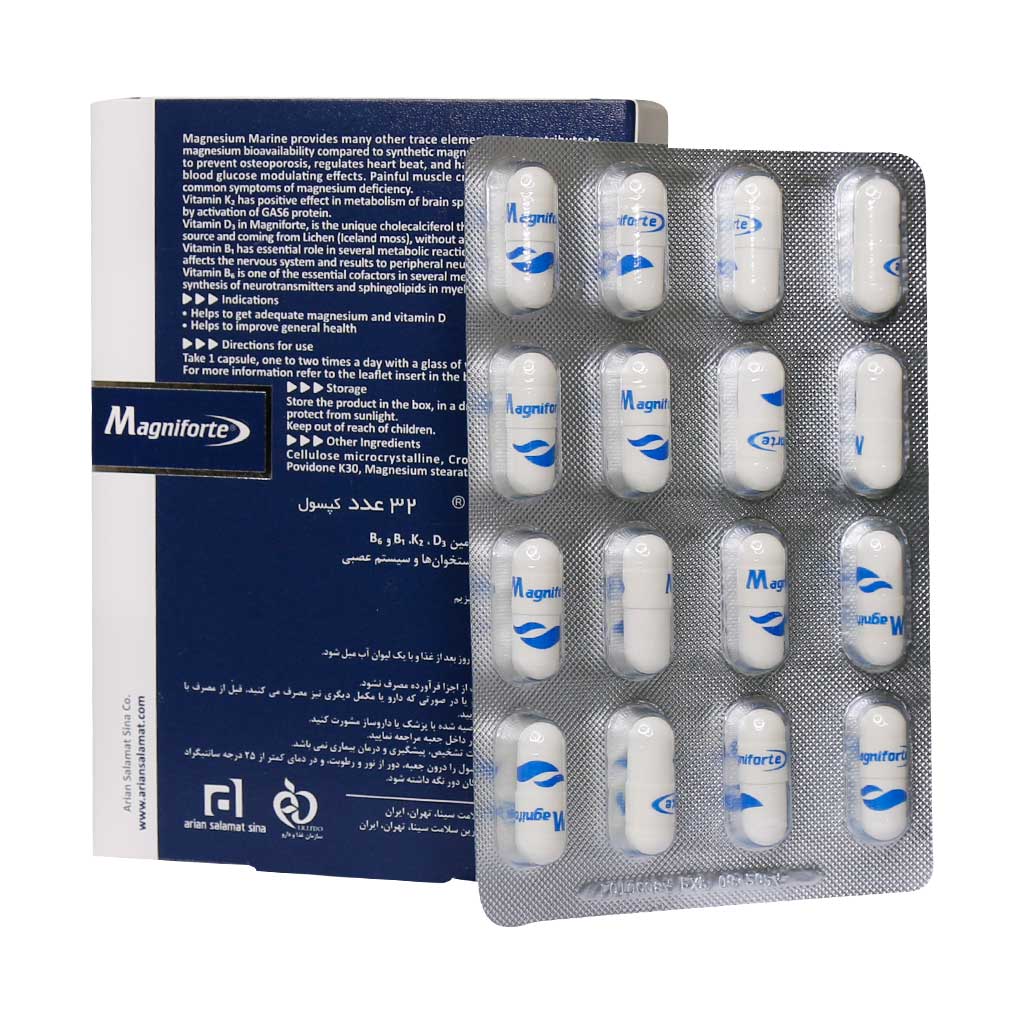 - یک عدد کپسول magniforte، یک تا دوبار در روز بعد از غذا و با یک لیوان آب میل شود.